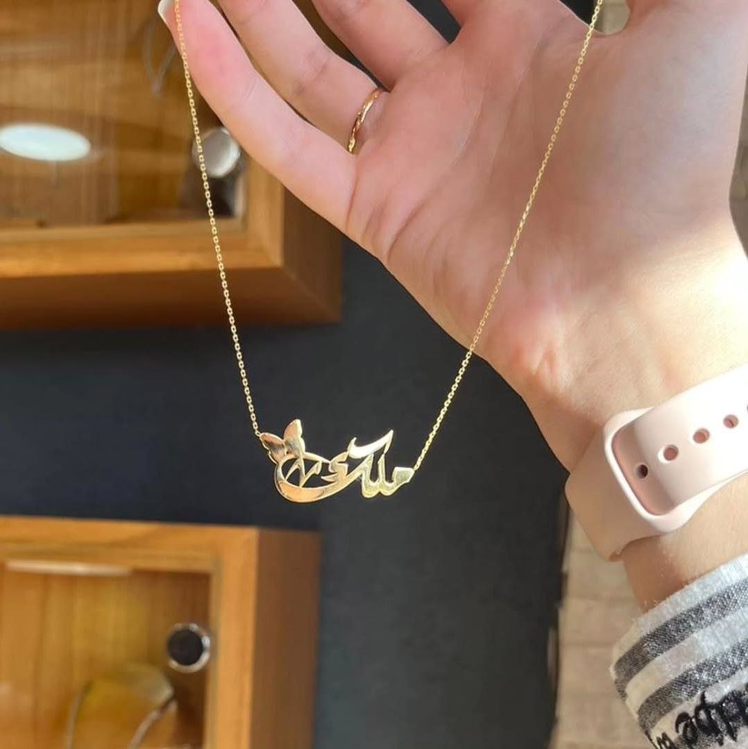"سلسال اسم مطلي ذهب مع فراشة ناعمةتصميم أنيق حسب الطلب هدية مثالية للبنات في السعودية للمناسبات والتخرج والأعياد